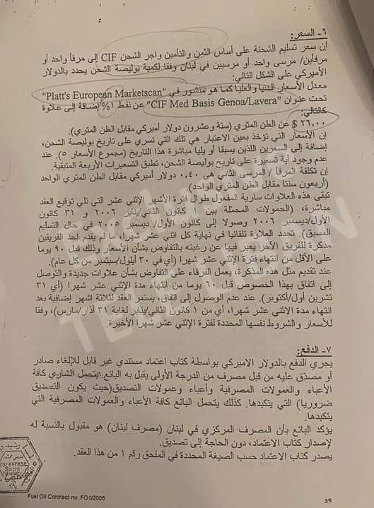 نشر تلفيزيون لبنان صورة اصلية عن العقد الموقع بين الدولة اللبنانية وشركة سوناطراك لإستيراد النفط الى لبنان.
