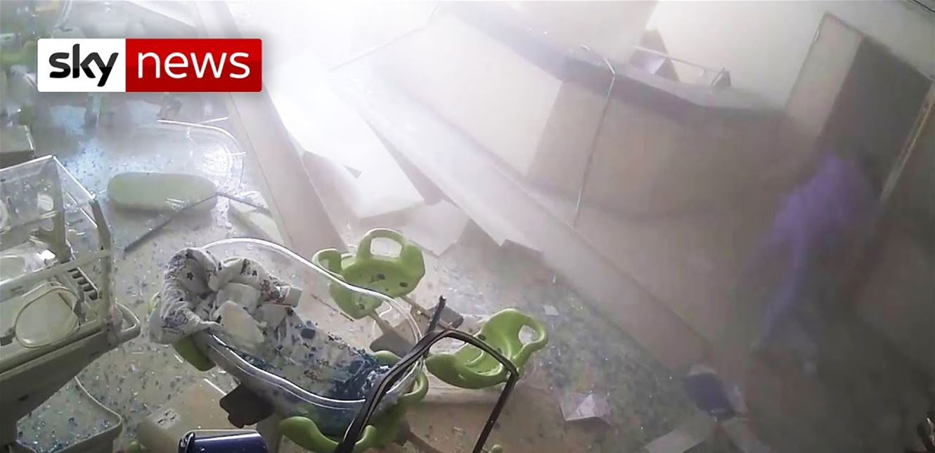 وتظهر اللقطات كيف اهتزت الأرض وحالة الدمار التي ألمّت بالمستشفى لحظة دوي الانفجار، فيمكن مشاهدة إحدى الممرضات تركض لحماية الأطفال المولودين حديثاً. كما يمكن مشاهدة حالة الهلع التي أصابت العاملين وزوار المستشفى عند المدخل.