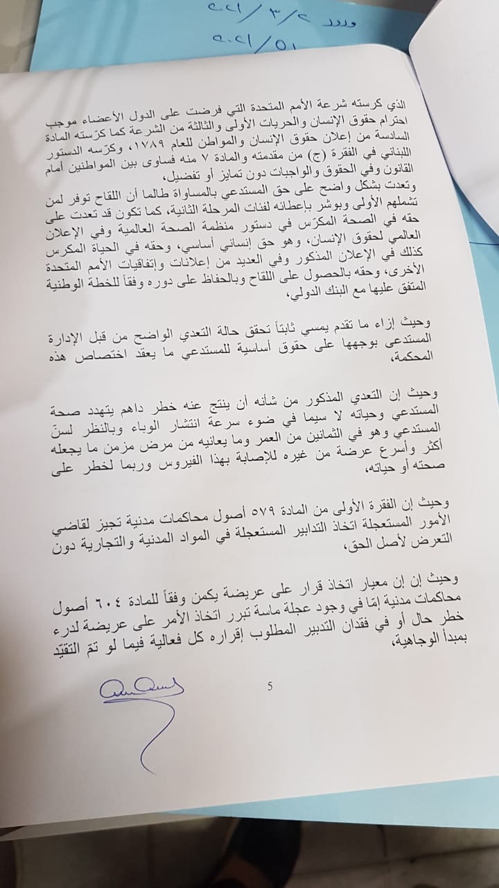 القاضية كارلا شواح تصدر قرار بإلزام الدولة اللبنانية ووزارة الصحة بتلقيح المواطن جوزيف الحاج وفقاً للآليات المعتمدة و بناءً على الدعوى المقدمة من قبله ونظراً لظرفه الصحي واعتبرت ان الدولة اللبنانية ارتكبت خطأ جسيم بتلقيح النواب والوزراء وخالفت المعايير والخطة التي أعلنت عنها pic.twitter.com/FpM8NjaKMN — joemaalouf جو معلوف (@joemaalouftv) March 3, 2021