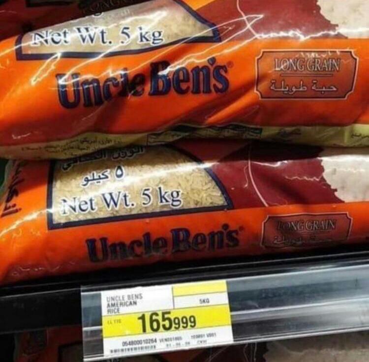 انتشرت عبر مواقع التواصل الاجتماعي صورة "5 كيلو" أرّز "حبة طويلة" معروضة للبيع بسعر 166 الف ليرة لبنانية، في حين ان سعر"الكيلو الواحد" هو 33 الف ليرة لبنانية.