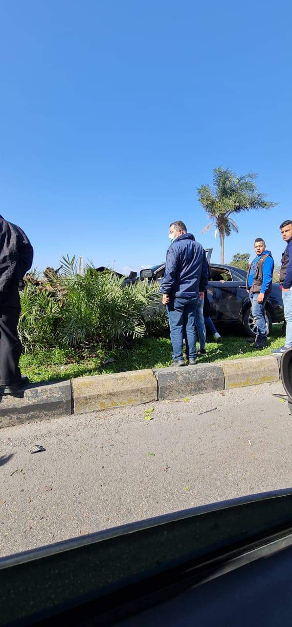 اصطدام سيارة بالفاصل الإسمنتي على طريق المعرض - طرابلس (صور)