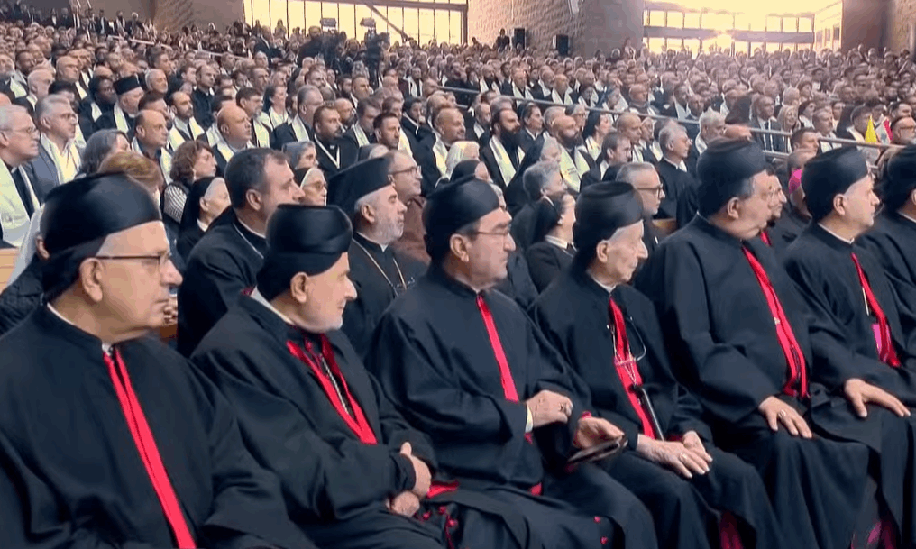 البابا لاوون الرابع عشر يلتقط صورة تذكارية مع البطاركة والأساقفة في مزار سيدة لبنان ـ حريصا