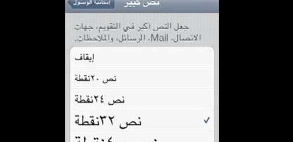 وإذا كنت تريد الحصول على أكبر خط اضغط على خيار Larger Accessibility Sizes.