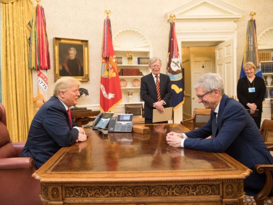 وفي نيسان أيضاً، لقاء الرئيس التنفيذي لشركة "آبل" تيم كوك، مع الرئيس الأميركي دونالد ترامب.