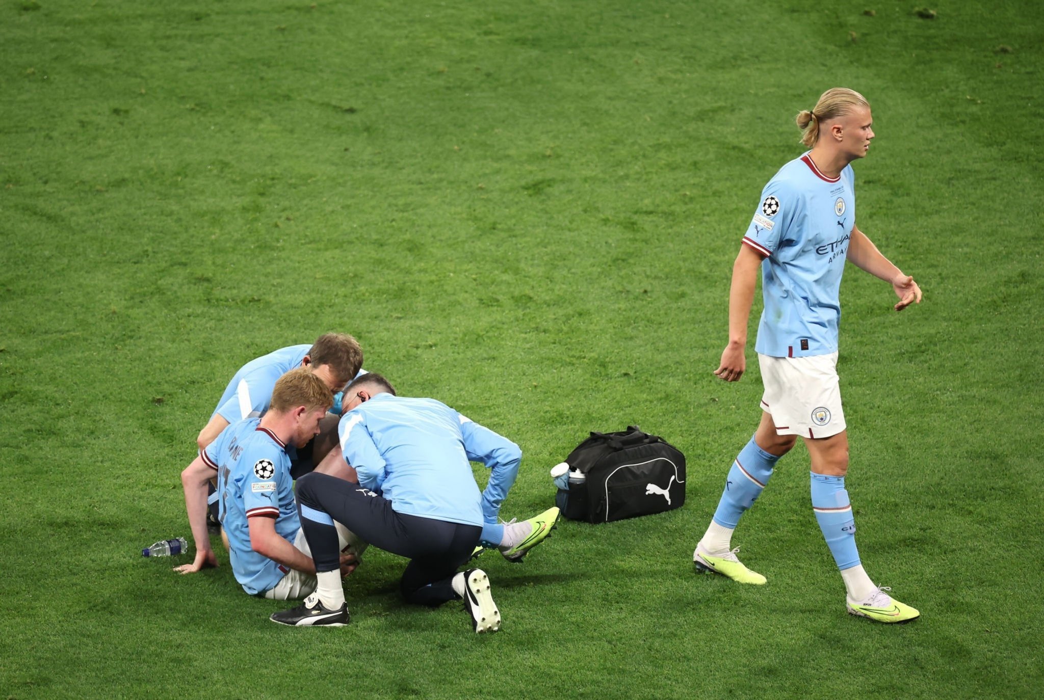 وتعرض النجم البلجيكي كيفن دي بروين لاعب "السيتي" لإصابة في الركبة عند الدقيقة 36 من زمن الشوط الأول للمباراة، ليخرج على إثرها من ملعب "أتاتورك الأولمبي" بمدينة إسطنبول