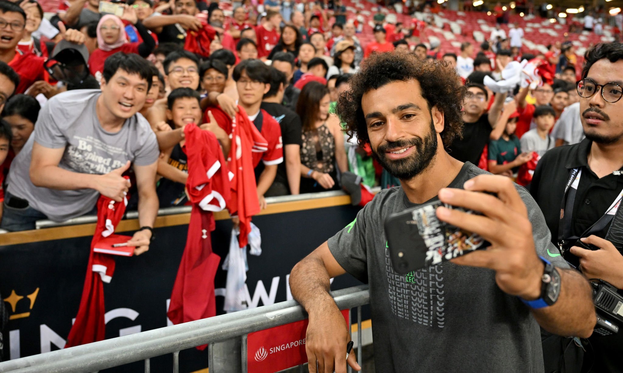 محمد صلاح يحتفل بفوز فريقه مع الجماهير في سنغافورة (صور)