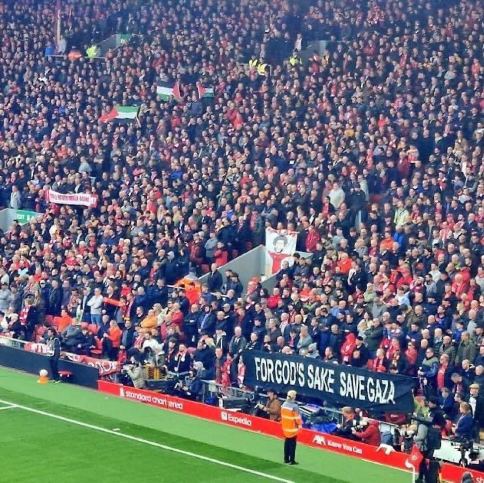 "أنقذوا غزة".. جماهير "ليفربول" تدعم فلسطين أمام أعين محمد صلاح
