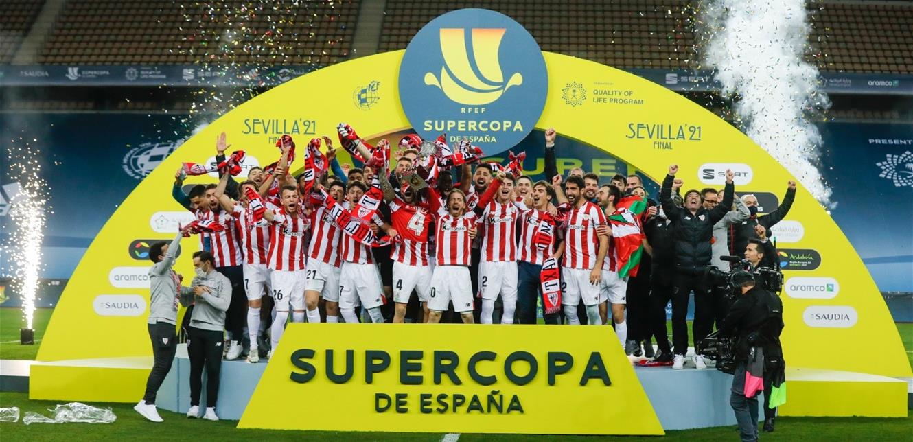 تُوّج نادي "أتلتيك بيلباو" بلقب كأس السوبر الإسبانية بفوزه على نادي "برشلونة" بنتيجة 3-2 بعد التمديد إثر انتهاء الوقت الأصلي بالتعادل 2-2-، في المباراة التي أقيمت بينهما، أمس الأحد، على ملعب "لا كارتوخا" في مدينة إشبيلية.