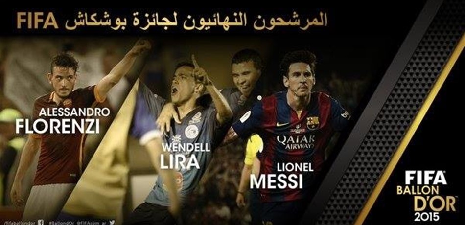 أعلن الاتحاد الدولي لكرة القدم (الفيفا) عن القائمة النهائية للأهداف الثالثة المرشحة للفوز بجائزة بوشكاش التي ستمنح لأفضل هدف في عام 2015. ودخل هدف ليونيل ميسي مهاجم برشلونة في القائمة النهائية الذي أحرزه في شباك اتلتيك بيلباو بنهائي كأس ملك إسبانيا. كذلك تم ترشيح هدف أليساندرو فلورينزي نجم روما الذي أحرزه في شباك برشلونة في دوري أبطال أوروبا خلال الموسم الحالي. أما الهدف الثالث فكان الذي أحرزه ويندل ليرا خلال مواجهة أتلتيكو جويانينسي وجويانيسيا في بطولة "جويانو" بالبرازيل. كذلك كشف الفيفا عن الأسماء الثلاثة المرشحة لجائزة الكرة الذهبية كأفضل لاعبة في عام 2015 وهم الأمريكية كارلي لويد واليابانية أيا مياما وأخيراً الألمانية سيليا ساسيتش.