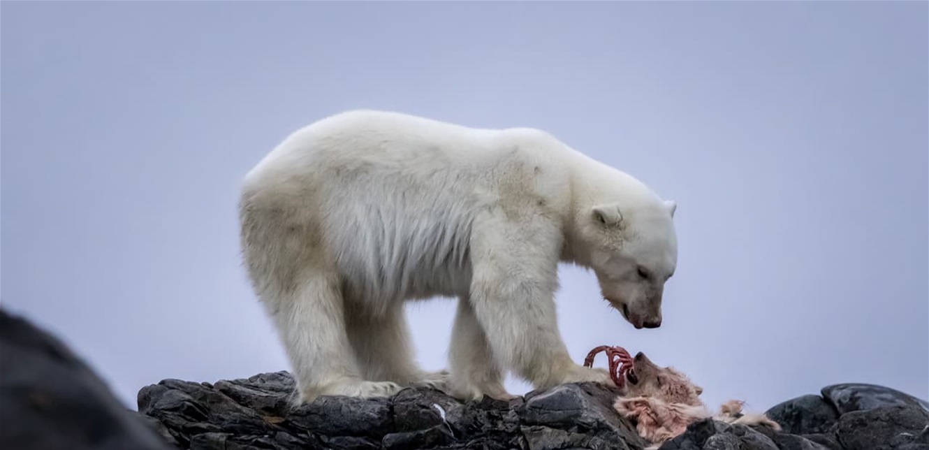 ورأى المصور الأميركي، وهو أيضا متخصص في علم أحياء، أن تصرف الدب كان دفاعيًا تجاه الذئاب، قائلًا: "لقد قام بالعديد من عمليات الخداع من أجل إبعاد الذئاب عن وجبة طعامه".