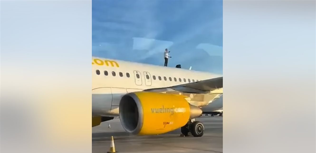 في حادثة غريبة، تسلّق رجل سقف طائرة ركاب في مطار سياحي في