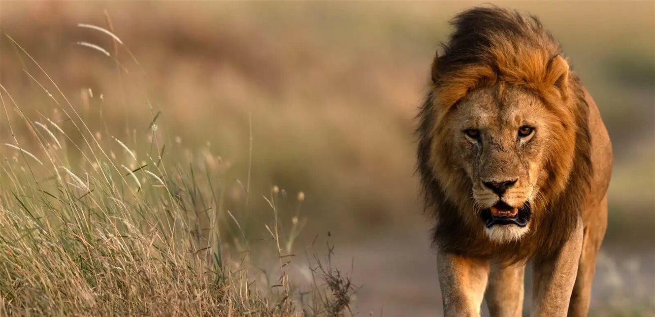 الأسد يتجول بحثًا عن فريسة قبل أن يسقط في بئر ممتلئة بالمياه؛ ما أدى إلى احتجازه وعدم قدرته على الخروج.