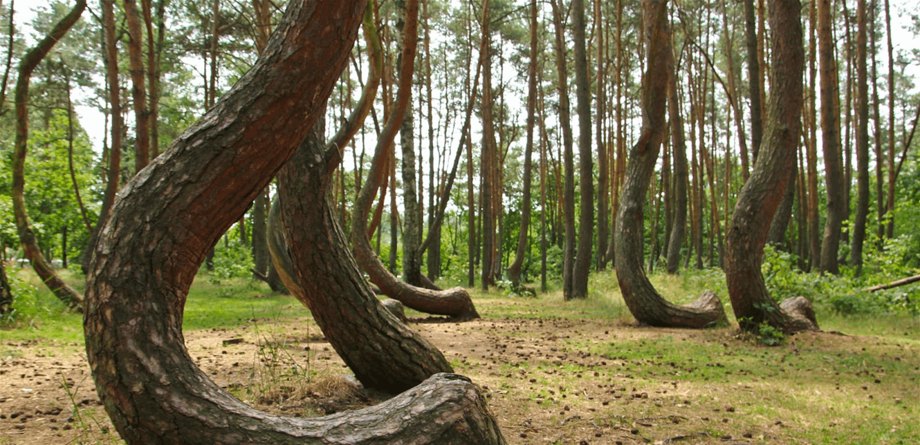 شمال غرب بولندا، تقف "الغابة الملتوية" كواحدة من أكثر المشاهد الطبيعية غرابة في