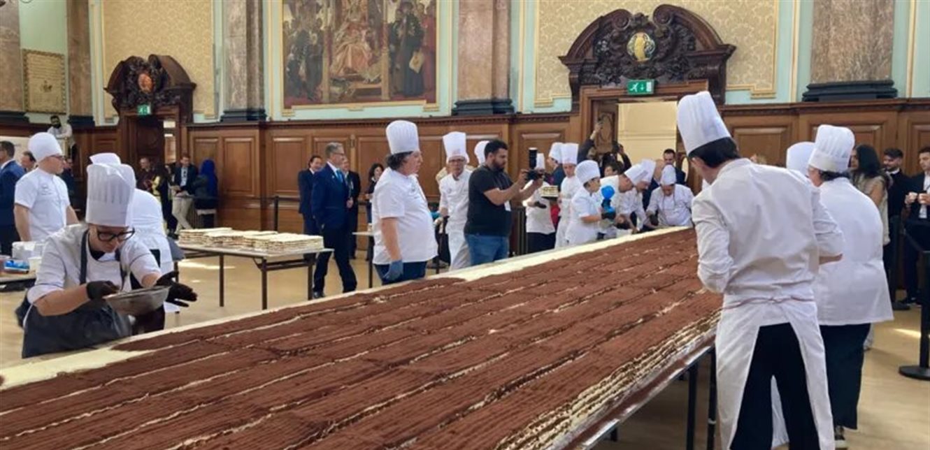 وتمكّن الفريق من تحقيق رقم قياسي جديد بعد أن بلغ طول التيراميسو 440.6 متر (1,445 قدمًا)، ما دفع حكام موسوعة غينيس إلى تأكيد تسجيل الإنجاز رسميًا يوم الأحد.
