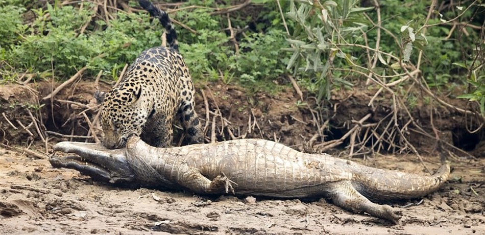 بالفيديو والصور.. فهد يفترس تمساحا بطريقة مذهلة