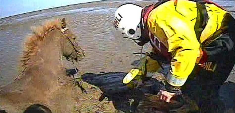 وفي التفاصيل التي أوردتها الصحيفة، فقد كان شخصان من راكبِي الخيول يعبران شاطئ "ميرسيسايد" بإنكلترا، عندما علق حصانانهما في الوحل، وقد غرق أحدهما لكن الآخر ظل عالقاً يكافح بصعوبة.