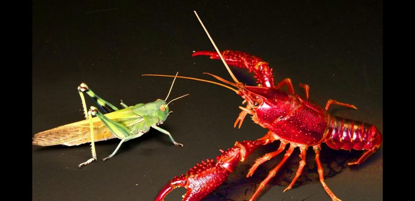 أجرى مختبرٌ علميّ اختباراً لمعركة طاحنة بين كركند أو "جراد البحر"، وجرادة ضخمة، بهدف مراقبة استراتيجية الإثنين في كيفية القتال والدفاع.