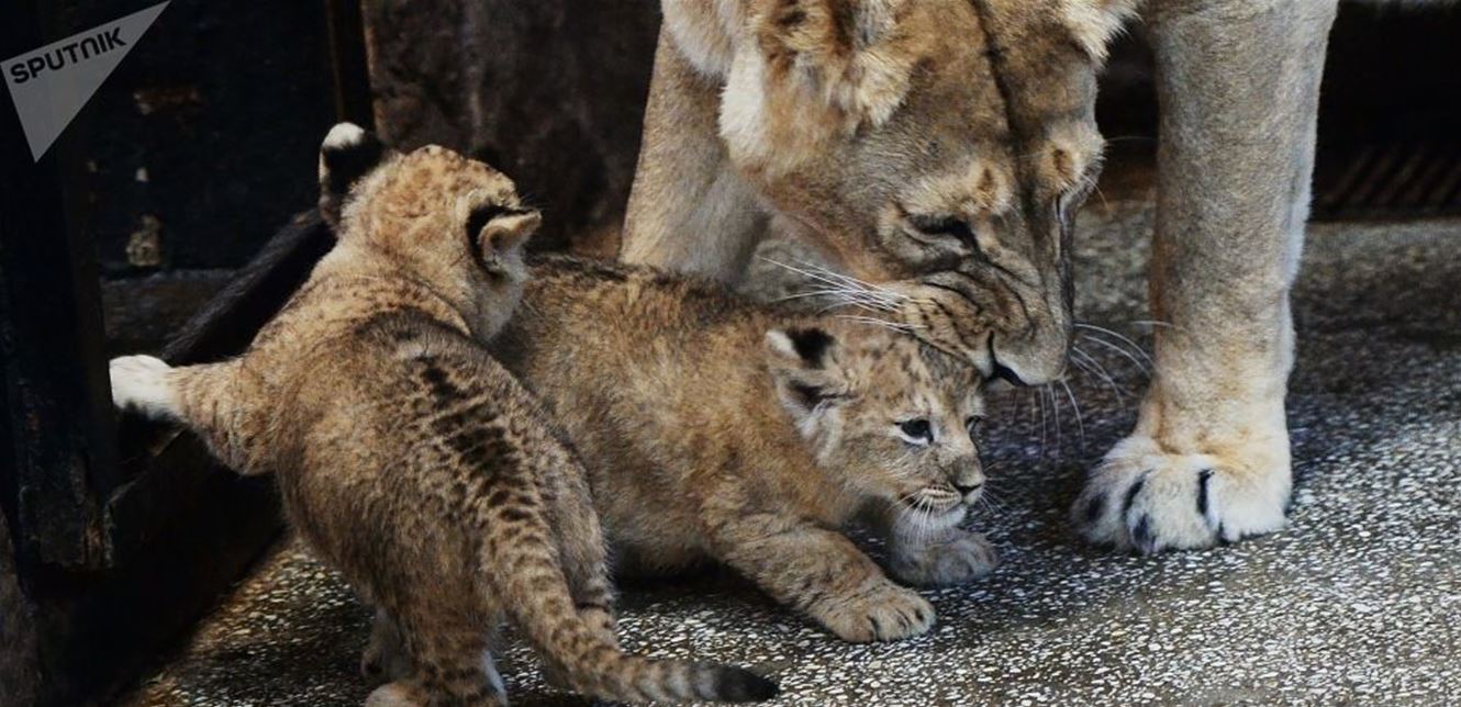 شبل الأسد يلاعب أمه فيفزعه.. هذا ما حصل في القفص (فيديو)