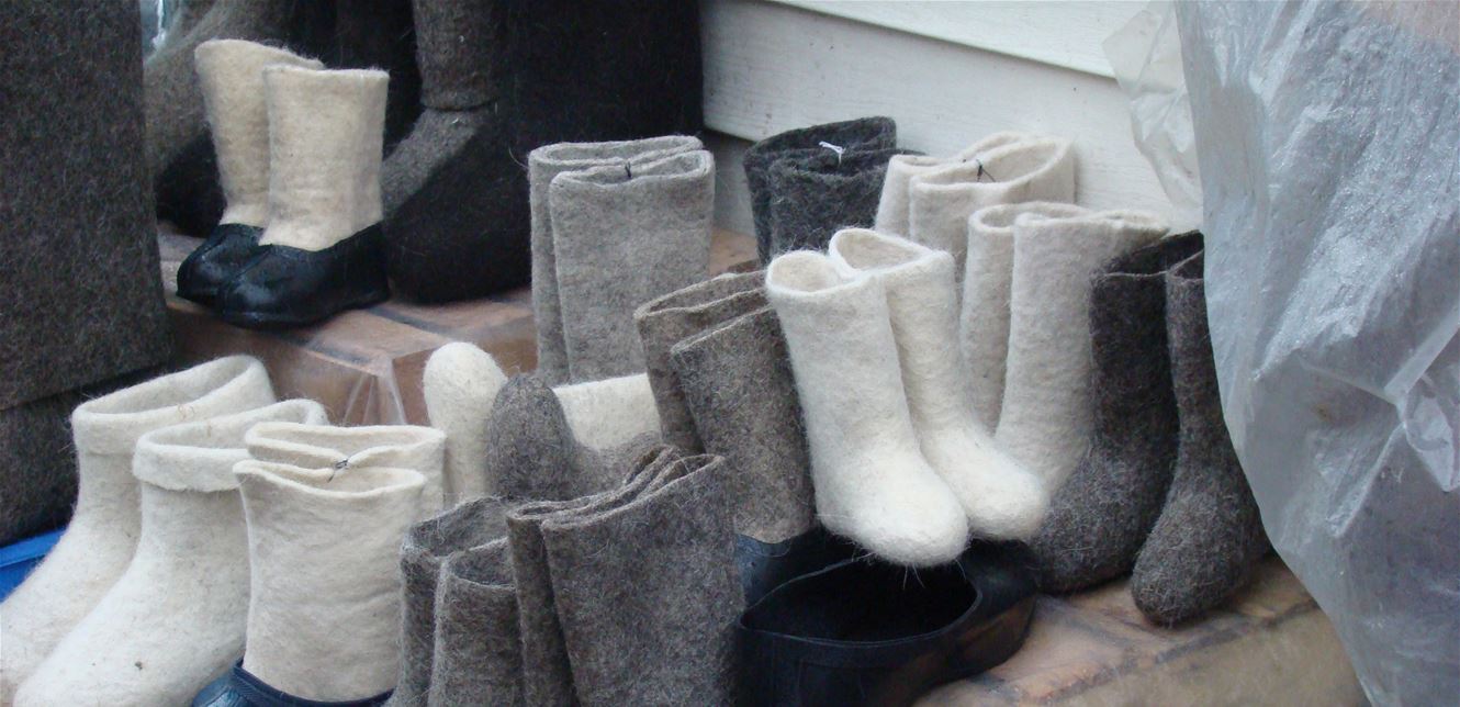 يذكر أنّ درجة الحرارة في هذه المنطقة انخفضت إلى 40 درجة تحت الصفر وحذاء "فالينكي" الروسي هو أفضل حذاء للوقاية من برد شتاء روسيا القارس.