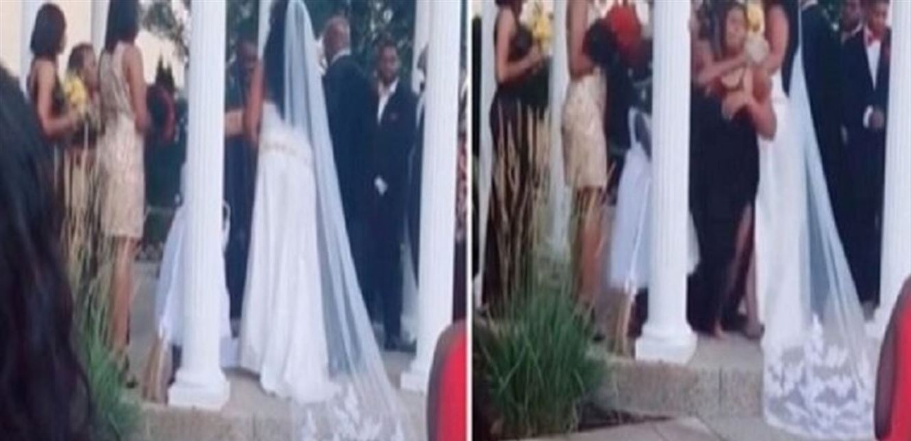 اقتحمت امرأة أميركية حامل حفل زفاف في الهواء الطلق، وادعت بأن العريس عشيقها ووالد طفلها الذي ينمو في أحشائها، لكن الأخير أشاح بوجهه عنها وتجاهلها وأكمل عرسه دون اكتراث لادعائها.