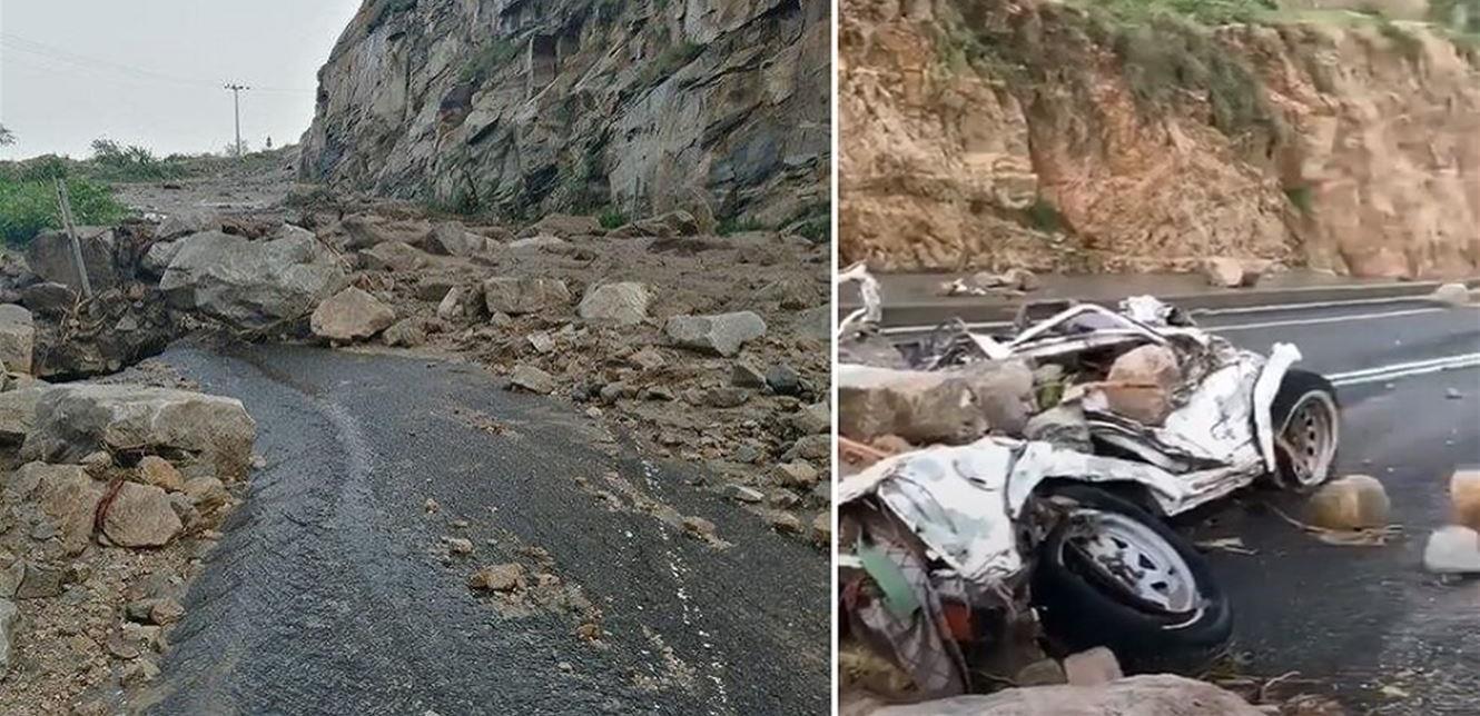 تساقطت صخور عملاقة من قمم جبل "الجذم" في جبال "العبادل" بمحافظة العارضة شرقي منطقة جازان السعودية، وتسبّبت في سحق مركبة كانت متوقفة على جانب الطريق، في مشهد يمكن وصفه بـ"المخيف".