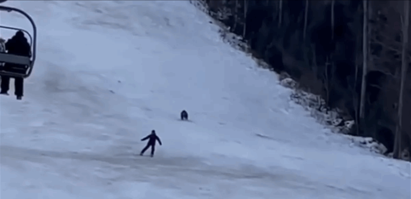 طارده دب على الثلج... رعب عاشه متزلج واجه الموت (فيديو)