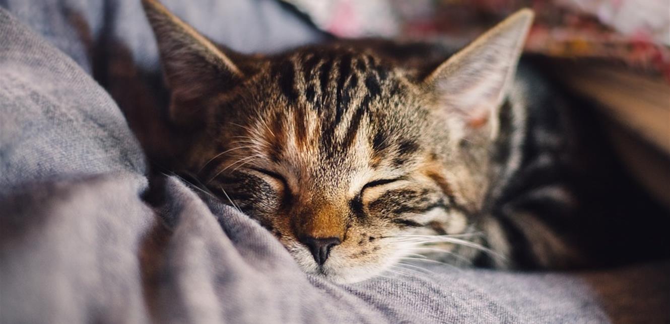 ويظهر قط يداعب في لطف أنف صاحبه المستغرق في النوم، وآخر يهز رأسه وثالث يصدر ضجة في الغرفة.