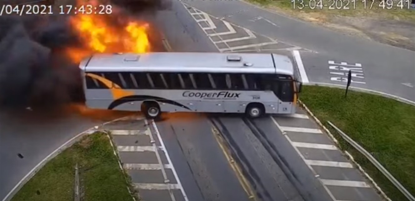وبحسب صحيفة "ديلي ميل" البريطانية، خطأ واحد ارتكبه سائق تاكسي وهو يعبر التقاطع على أحد الطرق السريعة بالبرازيل، ليُفاجأ بشاحنة وقود تصطدم به بقوة، وتدفعه أمامها ليصطدم كلاهما؛ الشاحنة والتاكسي، بحافلة مدرسية، وفي ثوانٍ تحولت السيارات إلى كتلة من النيران.