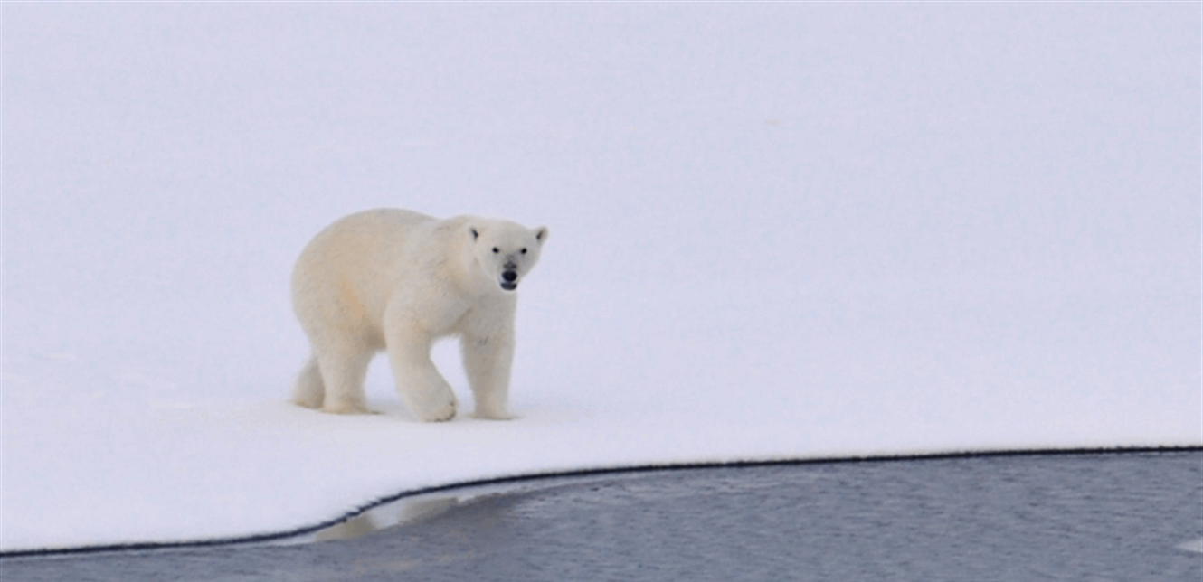 تصطاد الدببة القطبية الفقمة عادة من الجليد البحري في الدائرة القطبية الشمالية، ولكن الحيوانات المهددة بالانقراض تُدفع إلى اليابسة بسبب انحسار الجليد لتبحث عن فريسة جديدة.
