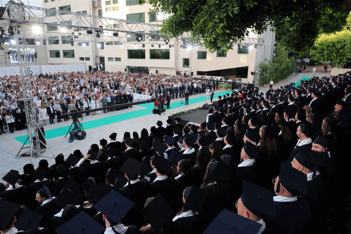 وكان الحفل الذي قدمه الإعلامي يزبك وهبة قد استهل بكلمة طليعة الدورة ريتا نجيب يونس من كليه الهندسة، وتخلله تسليم عائلة زوجة الراحل الدكتور الكك القاضي رندة كفوري وشقيقته سلمى الكك درعًا تكريميًا من ولي الجامعة المطران عبد الساتر والرئيس جورج نعمة، كذلك قدم رئيس الجامعة درعًا تقديريًا لضيف الشرف الوزير الأسبق دميانوس قطار، واختتم الحفل بتوزيع الشهادات على الطلاب ومحطة فنية للفنانة ليال نعمة.