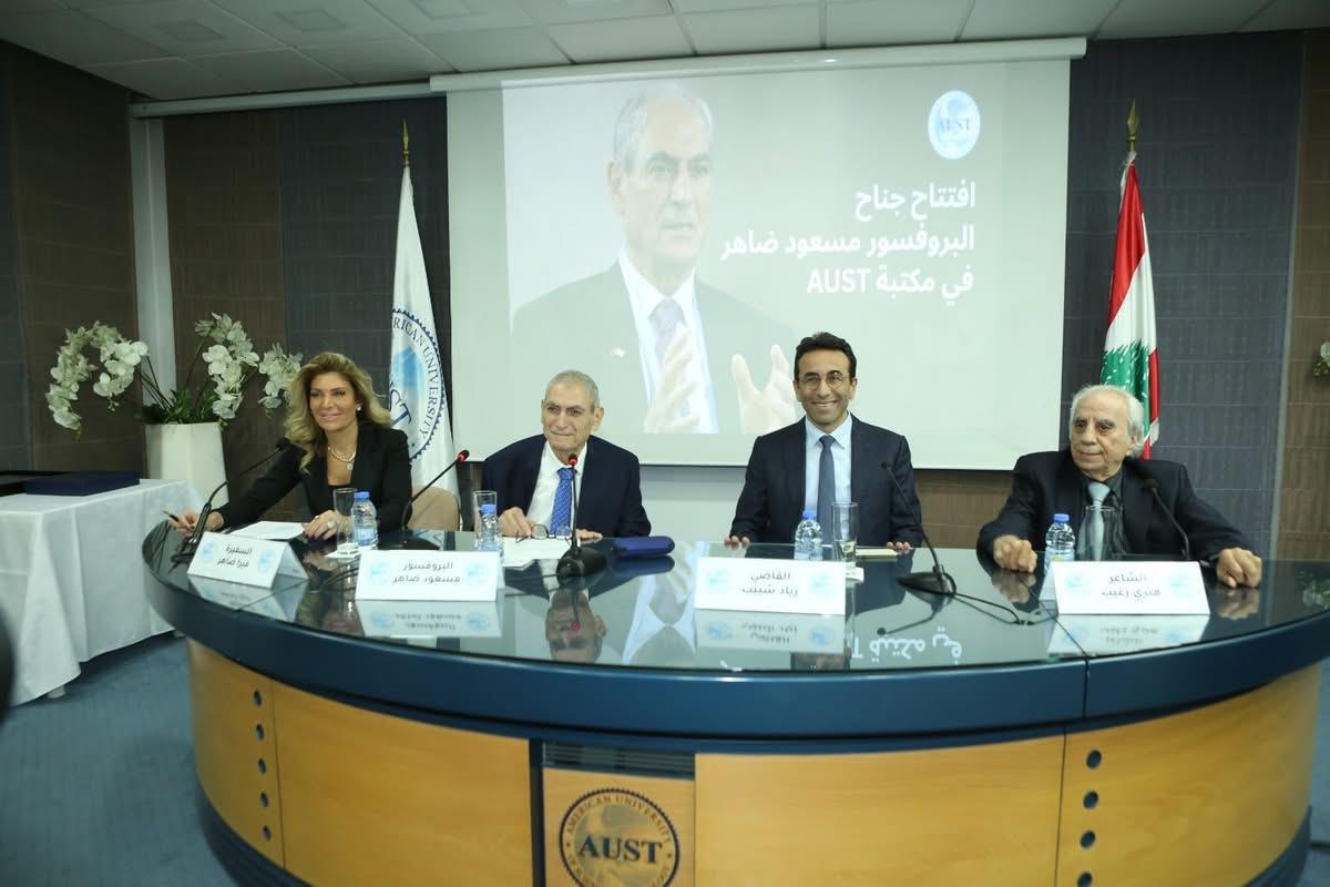 بمناسبة افتتاح جناح خاص يضم مؤلفات ومكتبة المؤرخ البروفسور مسعود ضاهر، نظّمت جامعة العلوم والتكنولوجيا الأميركية (AUST)، احتفالاً تكريمياً في حرمها الجامعي، تقديراً لمبادرته الكريمة بإهداء جزء أساسي من مكتبته الخاصة إلى الجامعة.