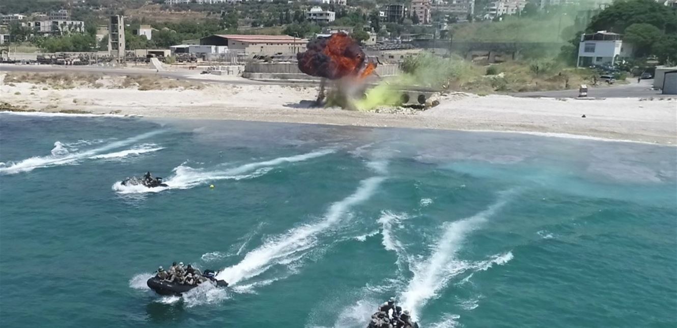 ثمّ نفّذ الفوج مناورة قتالية بالذخيرة الحية، شاركت فيها القوات الجوية وتشكيلة بحرية عائدة للفوج مؤلفة من 35 مركباً من مختلف الأحجام، تحاكي فرضية القضاء على مجموعة إرهابية متمركزة على الشاطئ.