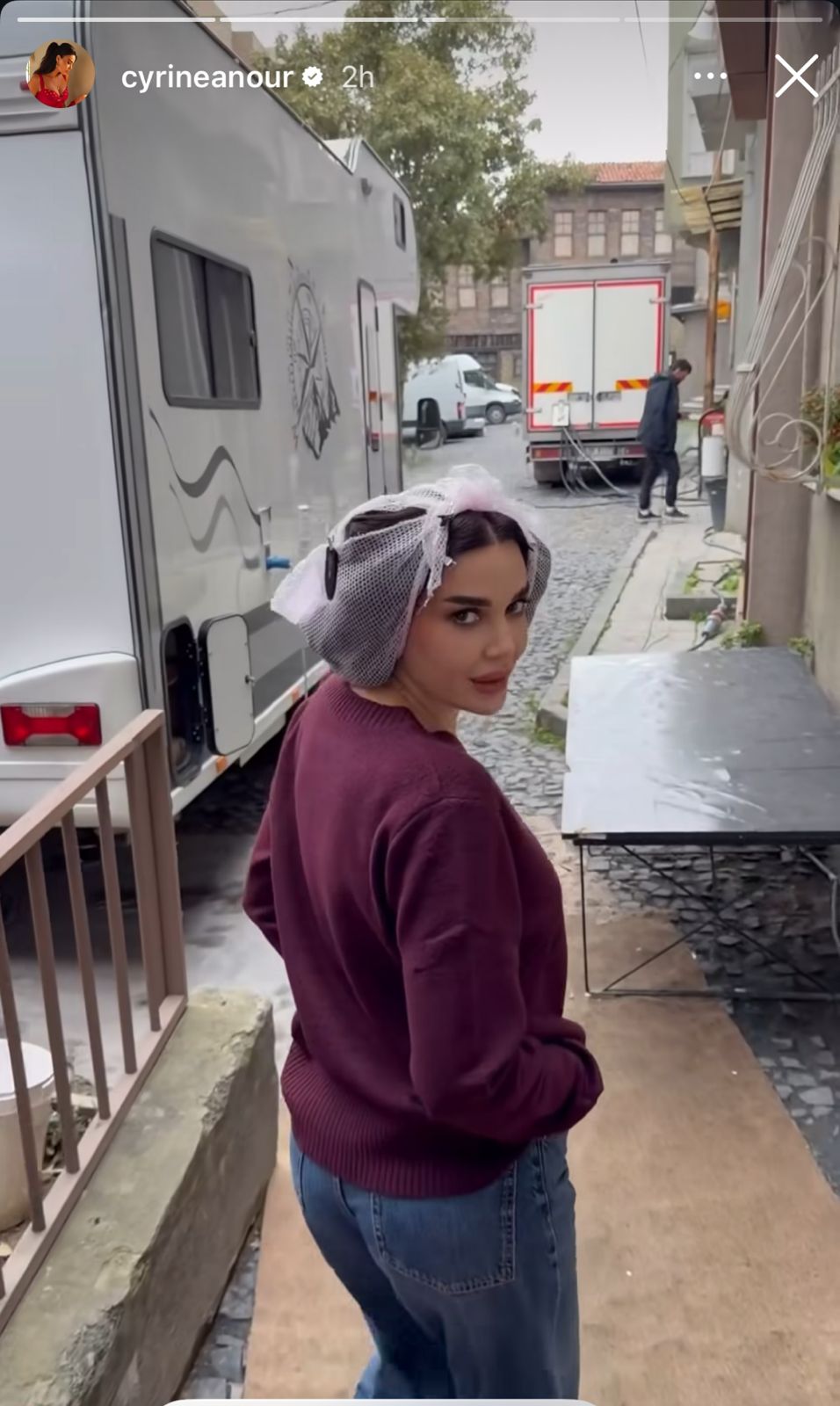 صورة جديدة عبر خاصية "الستوري" على حسابها الرسمي في إنستغرام، ظهرت فيها بكواليس تصوير عمل جديد، وهي ترتدي كنزة كاجوال وبنطال جينز، وقد غطّت شعرها بشبكة حماية غالباً ما تُستخدم في تحضيرات تصفيف الشعر أثناء التصوير، مما يشير إلى أنها تتحضر لتصوير مشهد أو دخول إلى موقع التصوير.