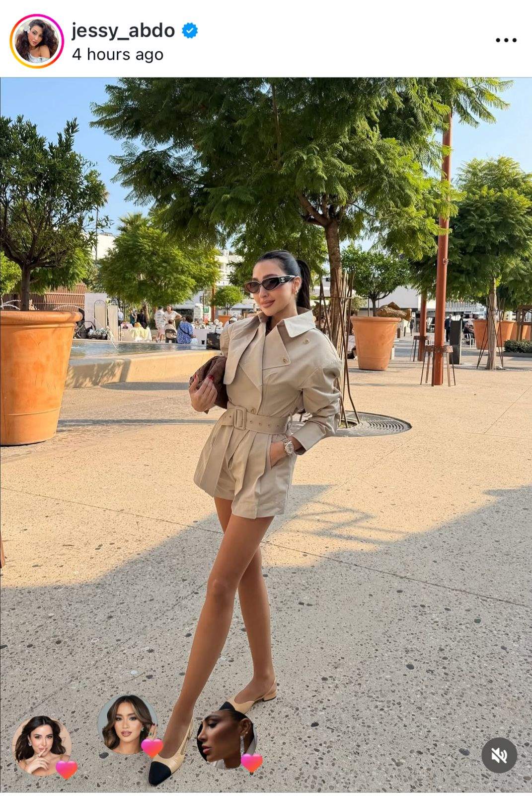صورة جديدة عبر حسابها الرسمي على إنستغرام، حيث ظهرت بإطلالة مميزة وعصرية، مرتديةً جاكيت شورت بلون البيج مع حزام بارز عند الخصر، ما أبرز رشاقتها وأسلوبها الراقي في الموضة.