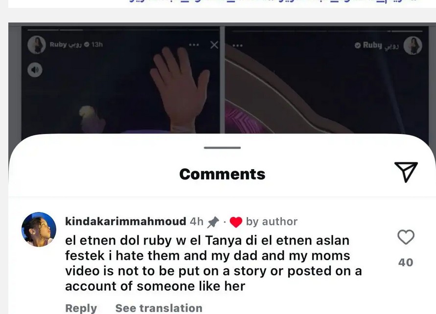 وكتبت كندة في تعليقها الغاضب: "الاتنين دول، روبي والتانية دي، فيستك! أنا بكرههم، وماما وبابا ما ينفعش تتجاب سيرتهم في بوستات".
