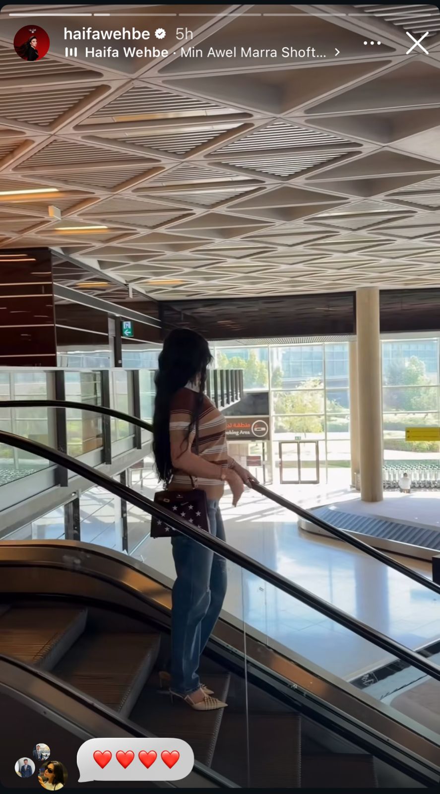 عبر خاصية “الستوري” على حسابها في “إنستغرام” صورة جديدة ظهرت فيها بإطلالة كاجوال أنيقة أثناء تواجدها في أحد المطارات.