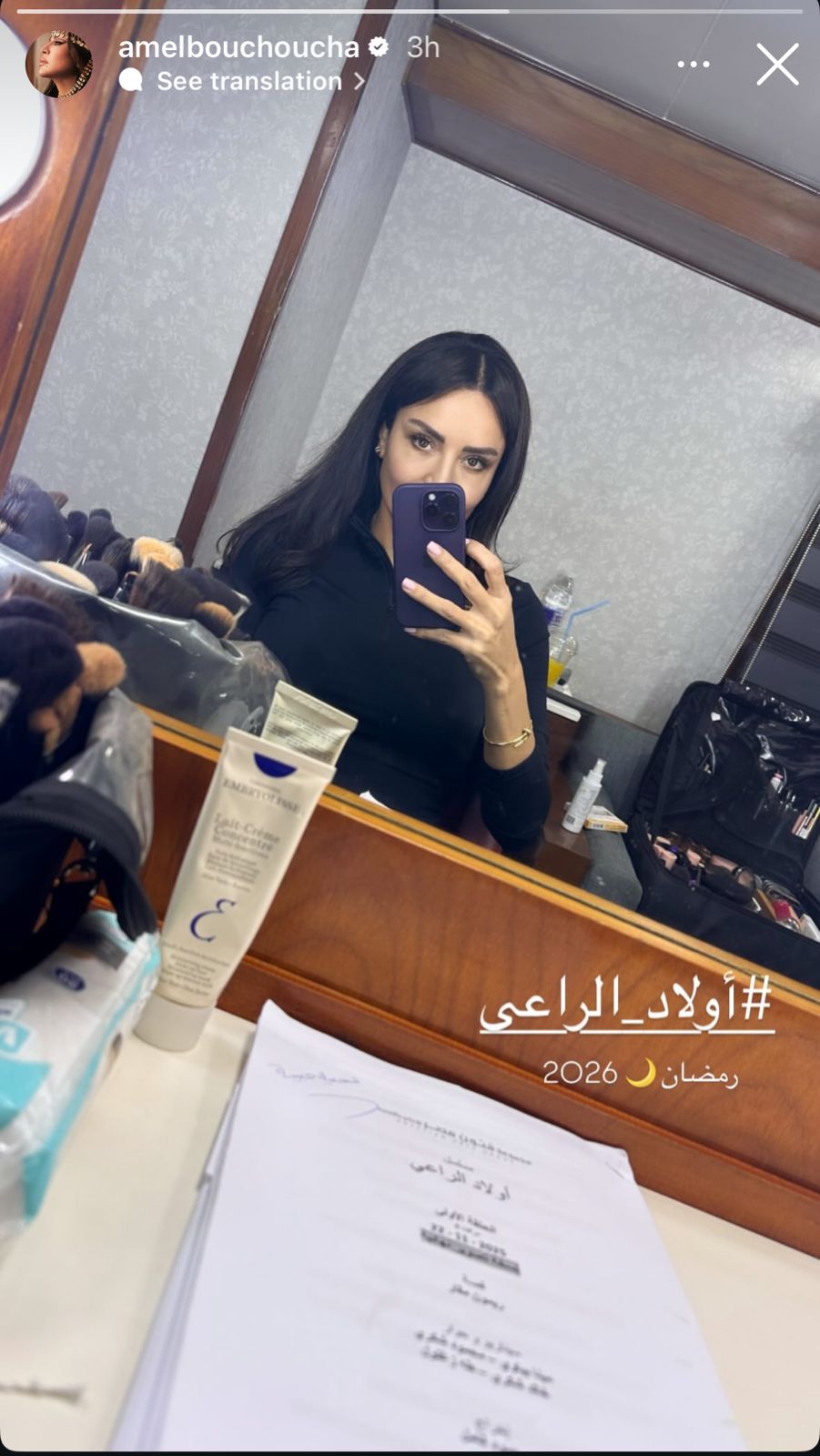 وتشير الصورة إلى بدء مرحلة التحضير للعمل الذي ينتظره الجمهور بفارغ الصبر، حيث ظهرت أمل بوشوشة في مكان يضم أدوات المكياج والسيناريو، مما يؤكد جاهزيتها للدور الذي ستقدمه في العمل.