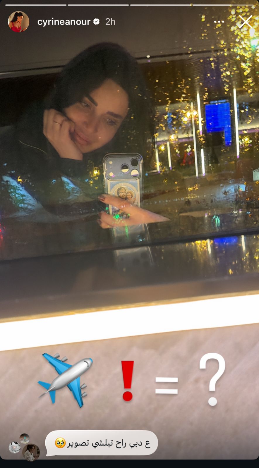 صورة عبر حسابها على "إنستغرام" تعكس لحظة تأمل أمام نافذة ممطرة، مرفقة برمز طائرة وعلامة تعجب، مما أثار تساؤلات متابعيها حول سفر مفاجئ.