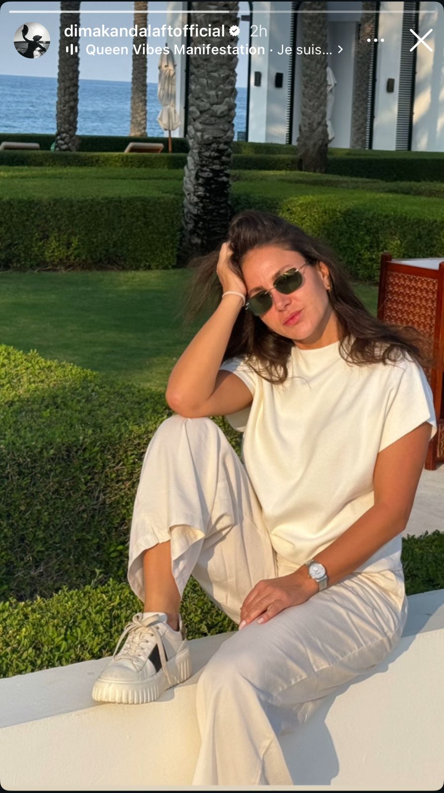 صورة عفوية تظهر فيها بإطلالة مريحة وعصرية أثناء استجمامها في مكان مفتوح بجانب البحر، مرتدية ملابس بألوان محايدة ونظارات شمسية، وتعكس الصورة أجواء من الاسترخاء والهدوء بعيداً عن ضغوط الحياة.