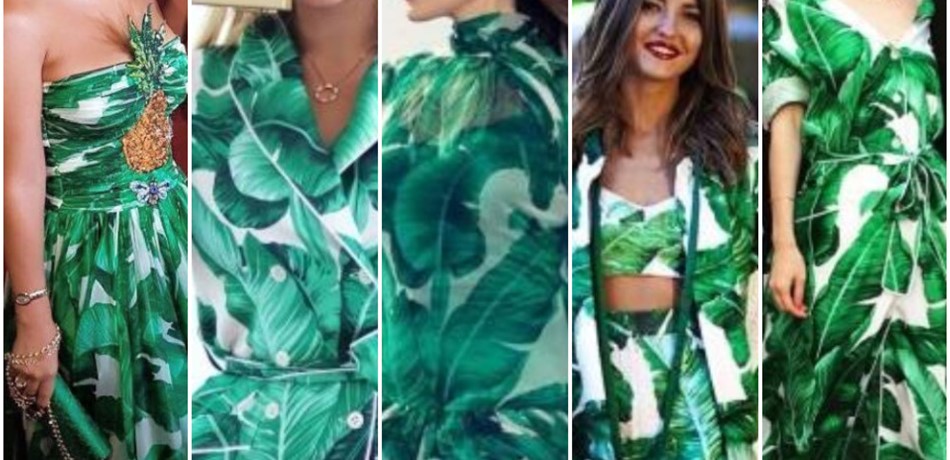 قامت دار الأزياء العالمية "دولشي آند غابانا" بصنع فستان "ورقة الموز" أو "الشجر الشهير"، وذلك من خلال عدة تفصيلات مختلفة، وذلك يفسر ظهور مشاهير العالم والعرب، اختيارهن لهذا اللوك، والغريب في الأمر أنه تم إطلاق تلك القماشة الشهيرة على شكل "بيجامة" لنجد خبيرة التجميل اللبنانية جويل ماردينيان ترتديه على شاشات التلفزيون. وكذلك المطربة شيرين ارتدت هذا الفستان الشهير بأحد المهرجانات بلبنان منذ عدة أيام، وكانت إطلالتها غير موفقة للغاية، حيث أظهر هذا الفستان مدى قصر قامتها، بالرغم من أن الفستان تم تزيينه بقطعة من "الأناناس" من ناحية الصدر. وكذلك مشاهير العالم، فمنهن من بدا عليها هذا الفستان مناسب وراقي، في حين كان اختيار هذا الفستان بالنسبة لهن سيء للغاية.