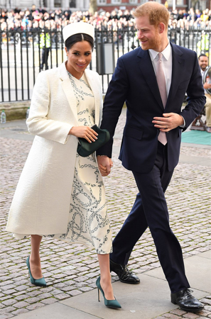 أمّا دوقة ساسيكس ميغان ماركل فلم تفوّت هذه المناسبة أبداً وحرصت على أن تكون خياراتها مختلفة تماماً عن كيت. ماركل التي تنتظر مولودها الأول من الأمير هاري، اختارت فستاناً أبيض اللون مزيّناً بالرسوم الناعمة مع المعطف الأبيض من علامة Victoria Beckham، فيما اختارت أن تضيف لمسة من الحيوية مع حذاء الكعب العالي من الساتان باللون الأخضر والكلاتش من علامة فيكتوريا بيكهام أيضاً.