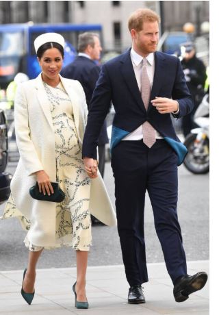 خطفت ميغان ماركل الأنظار بإطلالة طغى عليها اللون الأبيض من توقيع "Victoria Beckham" في يوم "Commonwealth Day"، حيث تألقت الدوقة بفستان باللون الأبيض مطبع برسومات السلاسل باللون الأخضر، ويبلغ ثمن التصميم نحو 2,850 دولار أميركي. ولتكمل إطلالتها الملكية إرتدت معطفاً باللون الأبيض