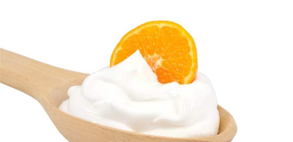 اخلطي جيداً كوباً من الزبادي مع ملعقة كبيرة من عصير البرتقال وملعقة صغيرة من عصير الليمون، ثم ادهني وجهك بالخليط واتركيه لمدة ربع ساعة، بعدها اغسلي وجهك برفق ونشفيه بفوطة قطنية ناعمة.