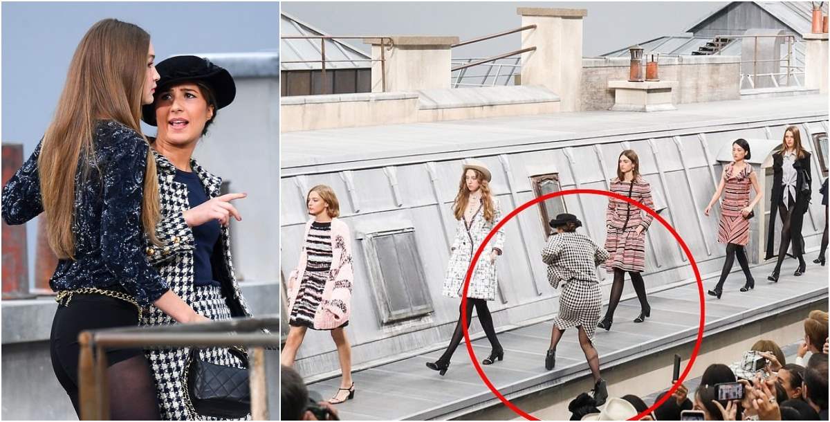 اقتحمت فتاةٌ المسرحَ خلال عرض أزياء "شانيل" في أسبوع الموضة بباريس لربيع وصيف 2020 بشكل مفاجئ، فاضطرت عارضة الأزياء الشهيرة جيجي حديد (24 عامًا) إلى التصرف لاحتواء الموقف، بعد أن تسلّلت الفتاة أثناء العرض، وفقًا لصحيفة "ديلي ميل" البريطانية.
