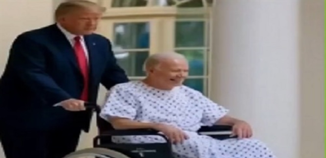فيديو مُركّب مُثير للجدل... ترامب يجرّ بايدن على كرسيّ مُتحرّك ويرميه في القمامة!