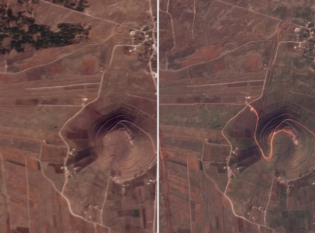 وأظهرت صور الأقمار الصناعية، القواعد العسكرية التي بُنيت، والأبنية السكنية والطرق الجديدة التي تقع على بعد 10 أميال جنوب