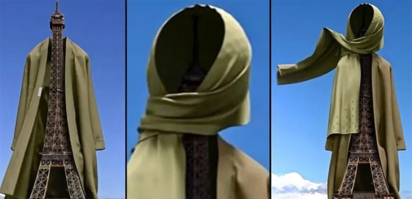 فرنسا منذ أسبوعين وذلك بسبب إعلان ظهر في موقع "إنستغرام" ونشرته ماركة ملابس متخصصة بصنع الزي الإسلامي، وفيه يظهر برج إيفل مُغطّىً بحجاب، مع تعليق يقول: "الحكومة