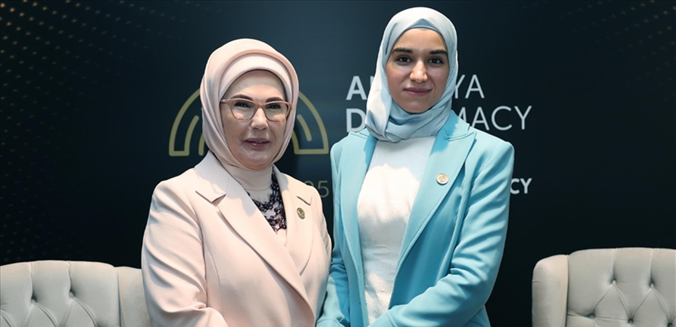 ، بعقيلة الرئيس السوري لطيفة الدروبي، في مركز نيست للمؤتمرات والمعارض، بمدينة أنطاليا