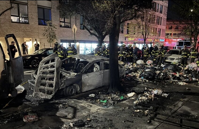الأميركية إثر انفجار سيارة اشتعلت فيها النيران في حي