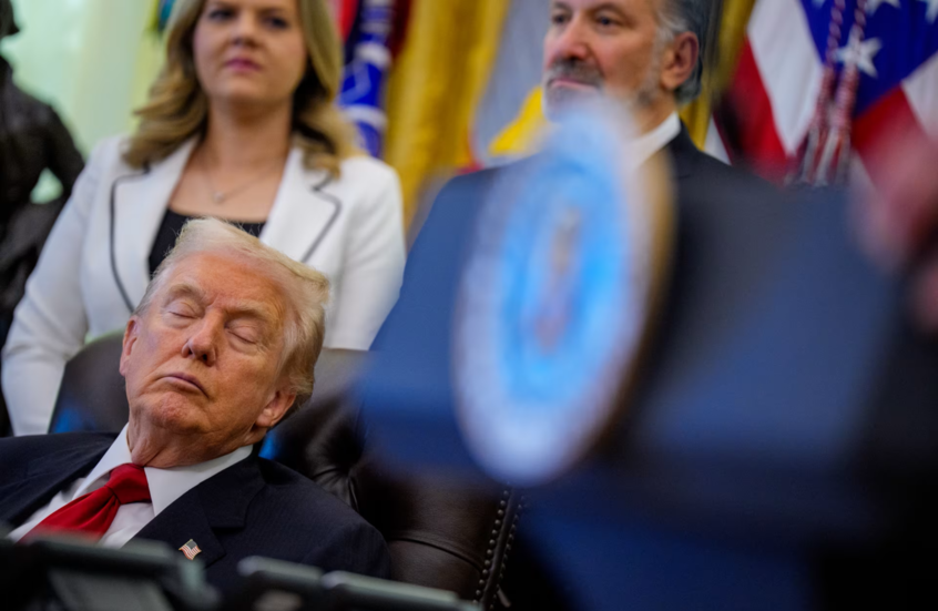 ترامب يغفو أثناء مؤتمر صحفي في المكتب البيضاوي.. صور تُثير الجدل!